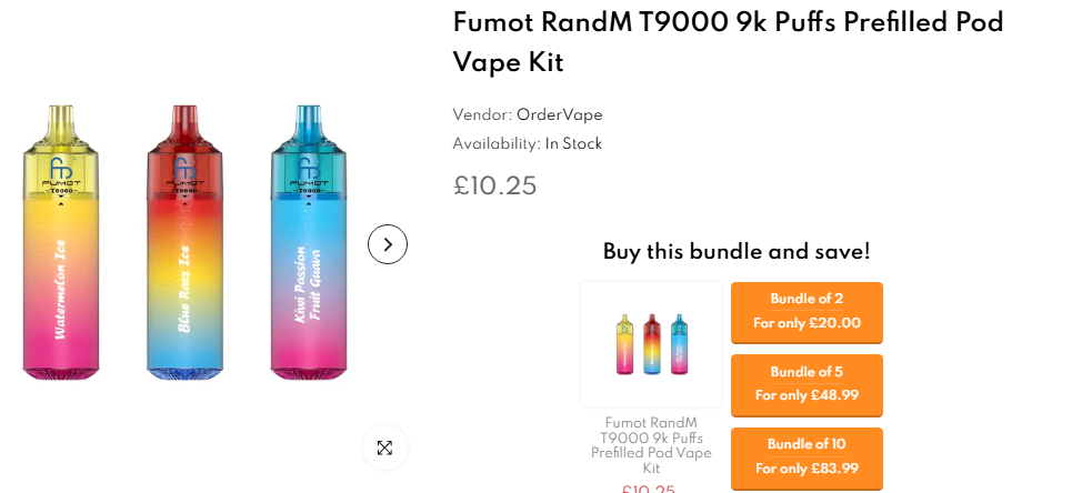 One key factor in comparing RandM T9000 prices is understanding the difference between online and in-store options. Online retailers often have lower overhead costs, allowing them to offer competitive pricing compared to physical shops. Order Vape UK specializes in sourcing the best online deals, making it easier for customers to shop Fumot RandM T9000 at the best rates. Additionally, online stores frequently provide customer reviews, which can help verify product authenticity before purchasing.